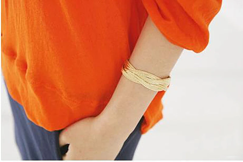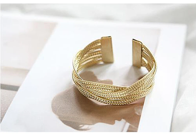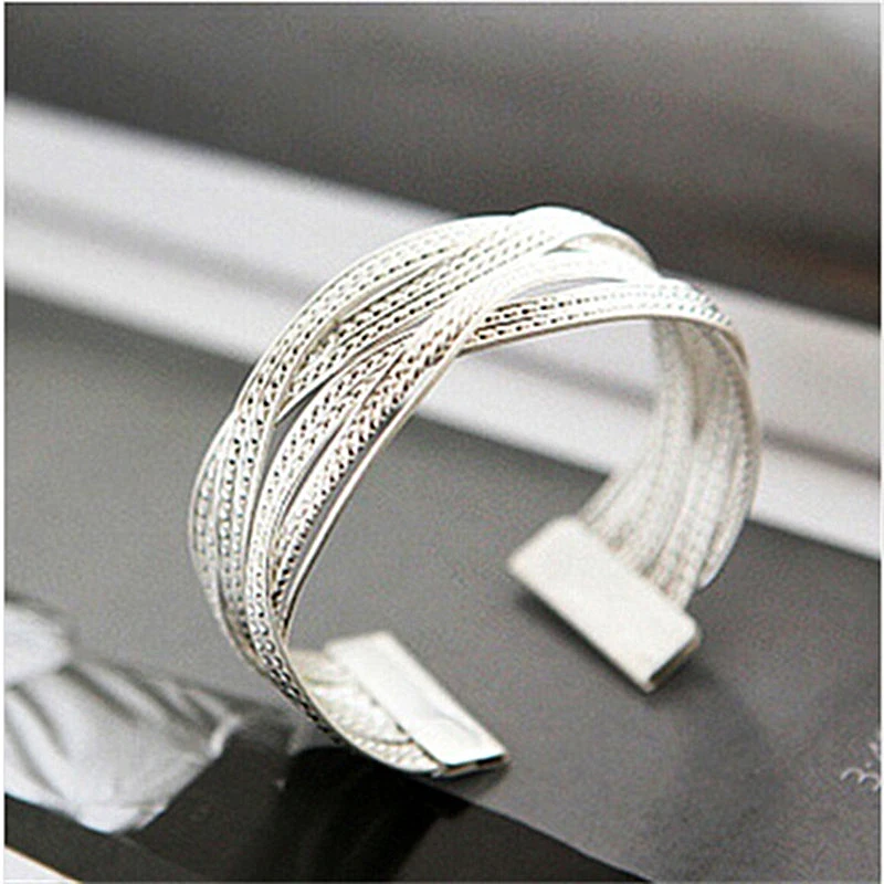 Buy Popular Silver Plated Wide Cuff Bracelet Braided Wicker Spike Metal Alloy Women's Bangle Bracelets
