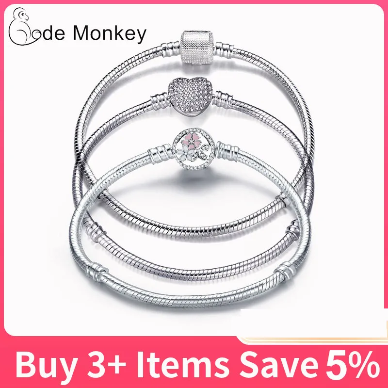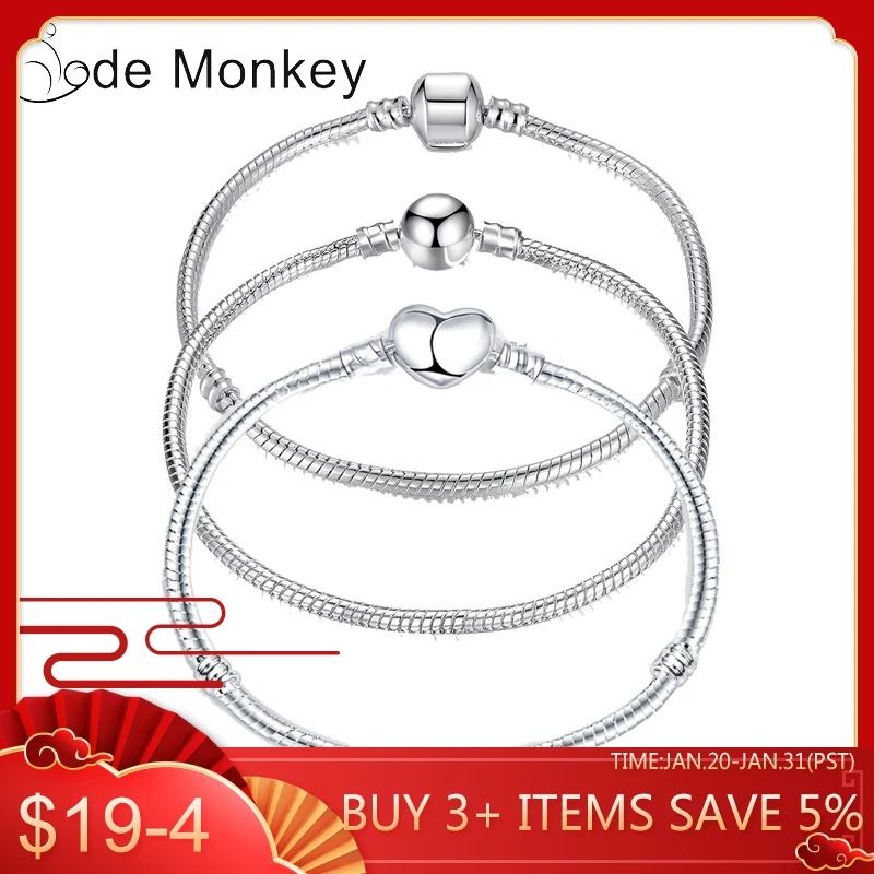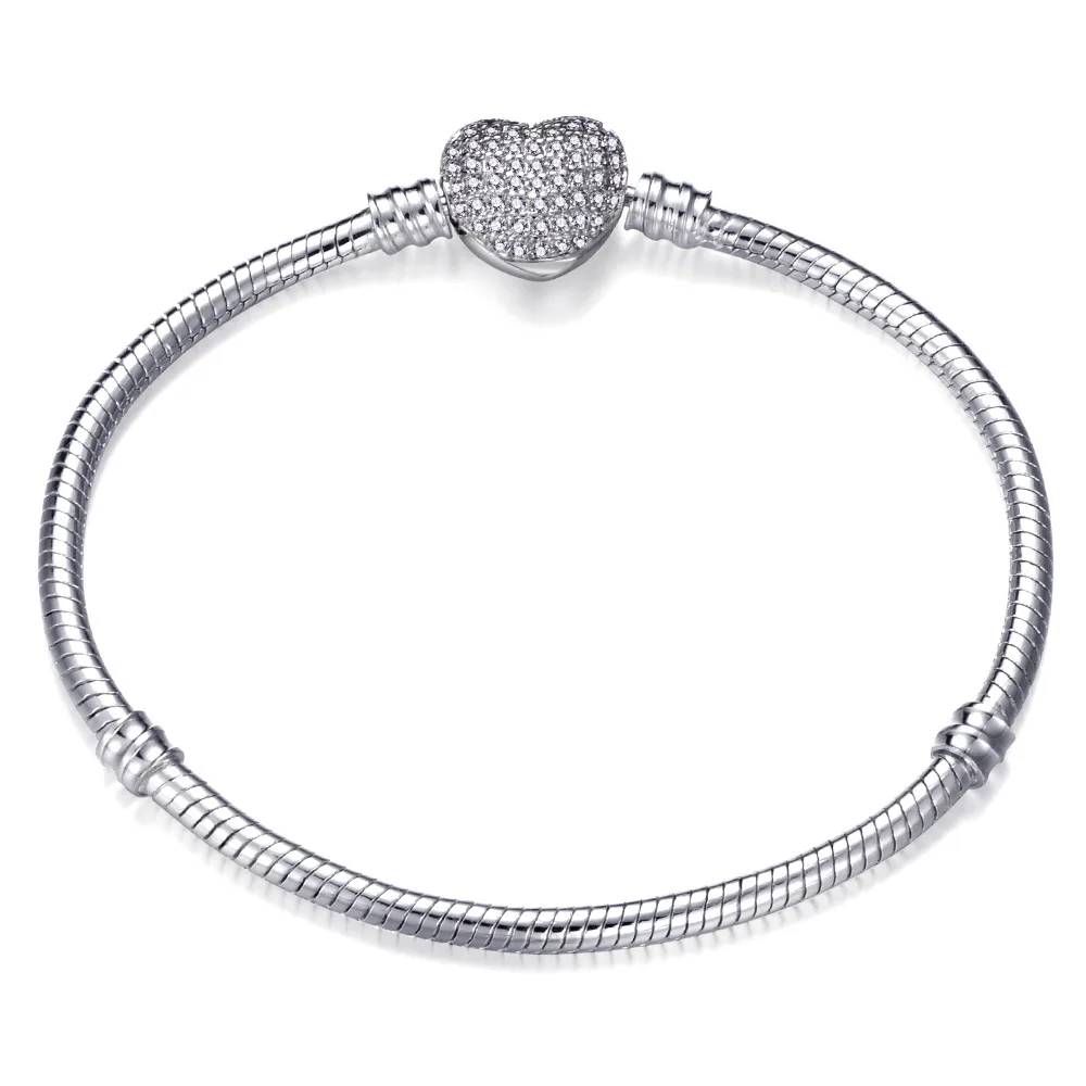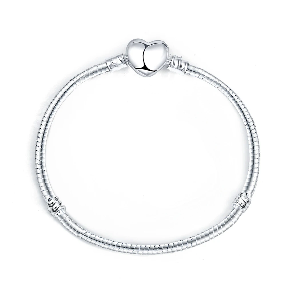 Buy 17-21cm Silver Color Love Snake Chain Bracelet Fit Original Design Beads Charm DIY Bead Bangles Jew