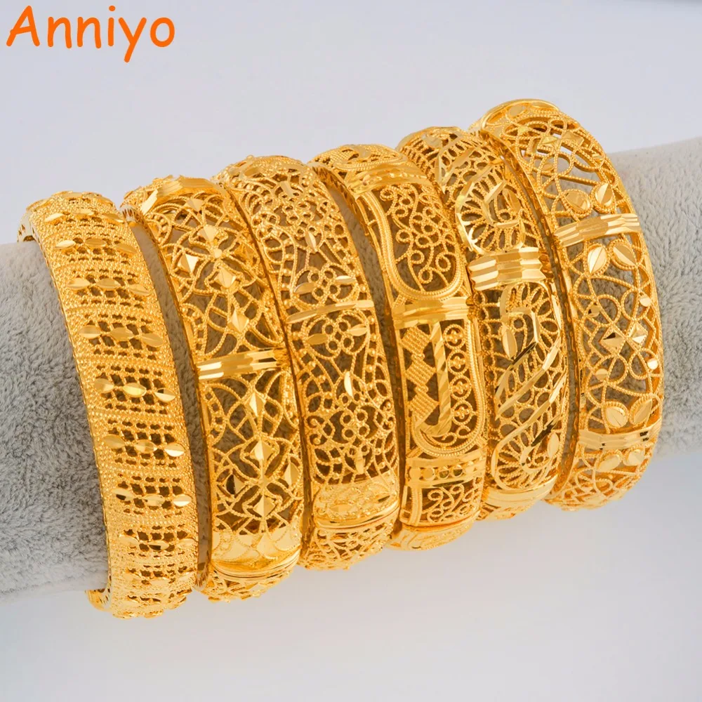 New Anniyo 24K Dubai Bangles Jewellery Ethiopian Bracelets for Women African Wedding Jewelry Party Gift