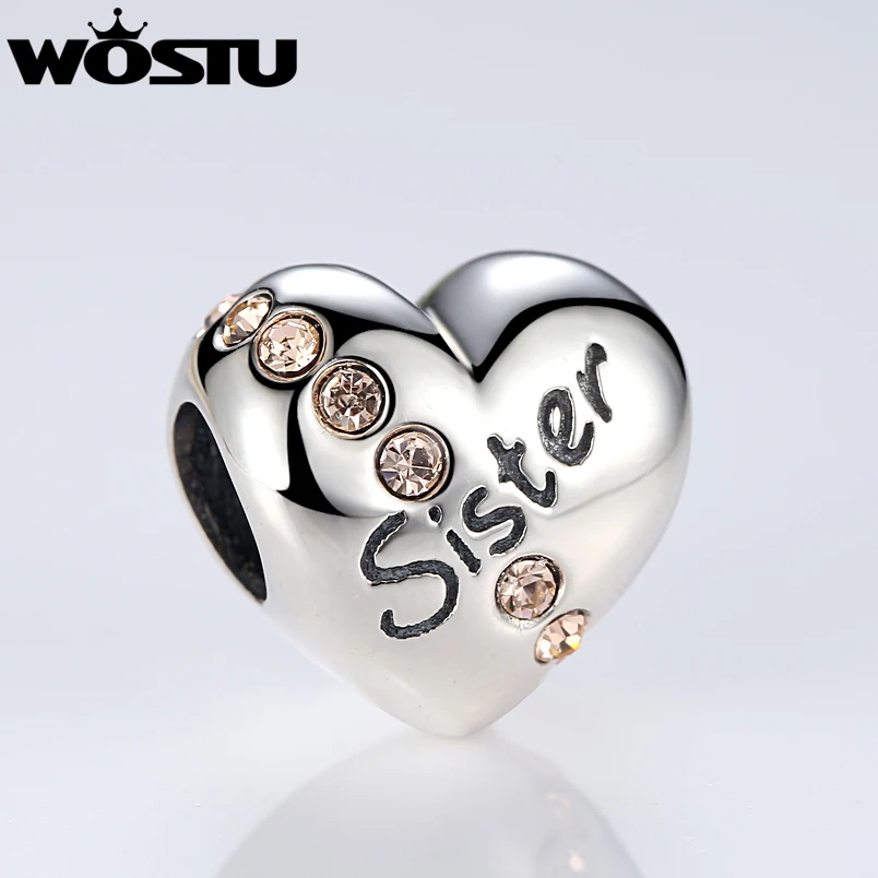 New Real 925 Sterling Soild Silver Sister Love Heart Charm Beads Fit Original WST Bracelet Bangle Authe