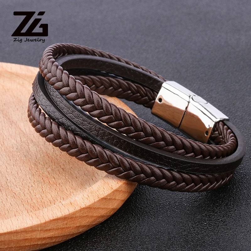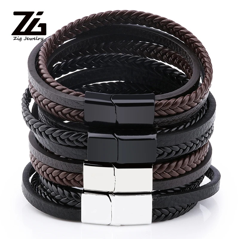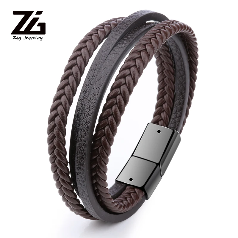 Buy ZG 2019 New Arrival Men's Braided Leather Bracelets & Bangles in Black and Brown Color with Magneti