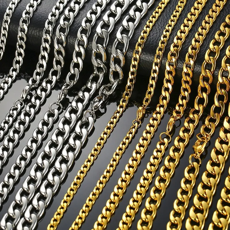 Promo 5-10MM Men's Round Miami Cuban Link Chain Necklace in Gold Tone Stainless Steel Hiphop Boy Male Jew